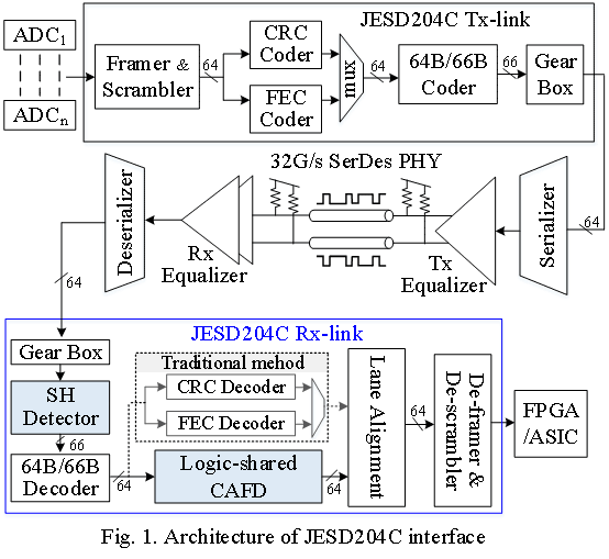 5G通信网络蓬勃发展的今天,5G对应的基础设施需要具有更大带宽,以达到更快的处理速度。高速通信接口JESD204C是数据转换器和逻辑设备之间的主流接口,满足高带宽、高传输效率和高鲁棒性的应用需求。但是,JESD204C存在链路初始化时间长、硬件面积大及功耗高等局限性。研究团队提出基于动态搜索空间、逻辑共享架构和关键路径识别算法的链路层优化设计,提升数据检测的效率与可靠性,并缩减解码电路的硬件开销。验证结果表明,本设计能够加速链路初始化与同步过程并提升硬件资源利用率,为高速数据转换系统提供了高能效、低延迟的解决方案。