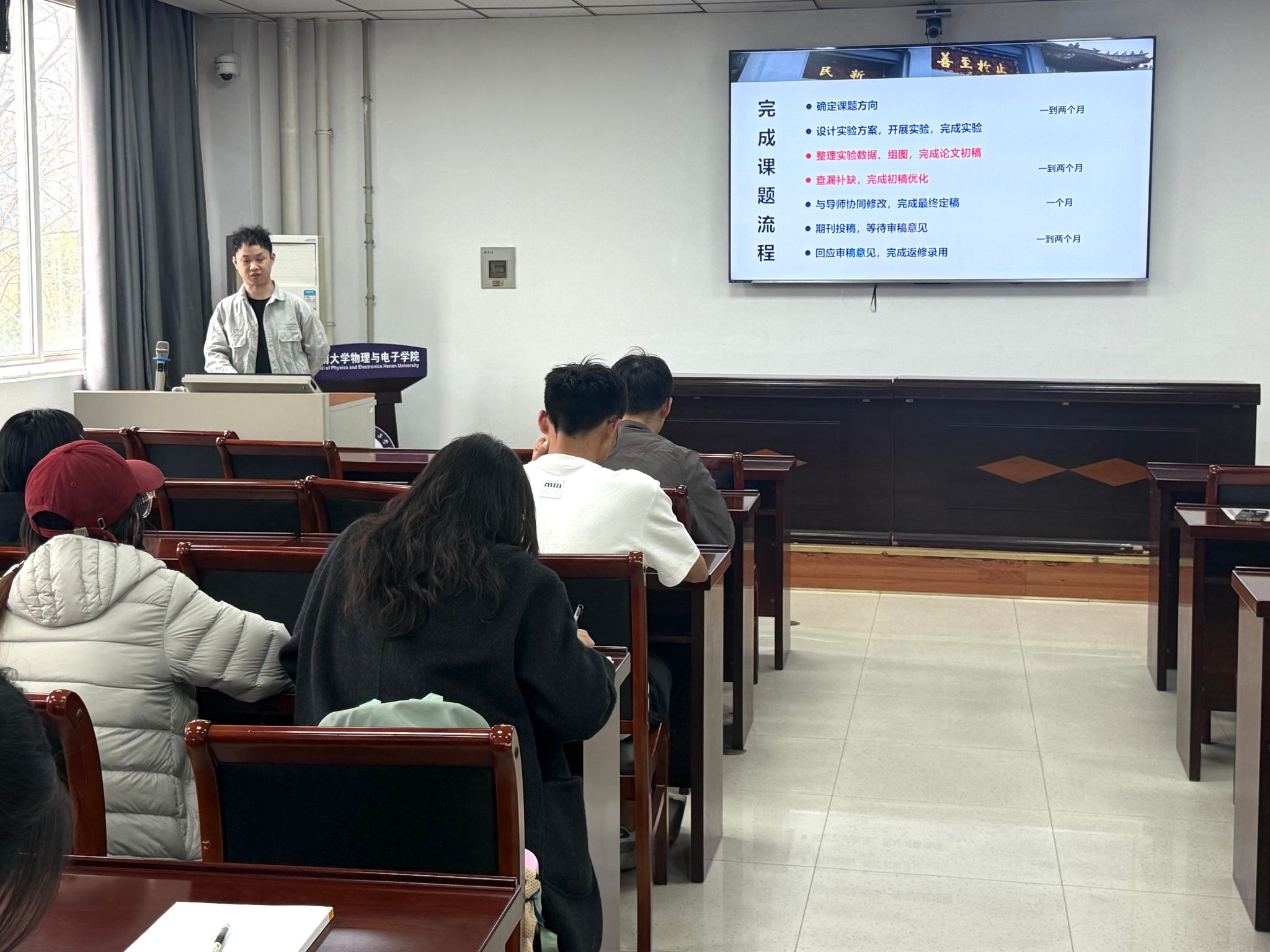 工作的基石,建议通过精读摘要来迅速提取核心信息。同时,他着重强调要规范记录实验数据,严谨地完成论文撰写工作。在时间管理方面,他分享了目标设定的方法,提醒同学们保持自己的节奏,避免盲目跟风。