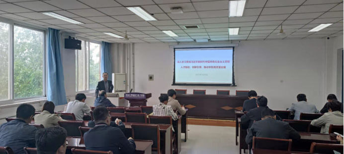 学院副院长邓浩作《深入学习贯彻习近平新时代中国特色社会主义思想——人才驱动、创新引领,推动学院高质量发展》主题报告。他表示,党的二十大报告对“实施科教兴国战略,强化现代化建设人才支撑”作了专门部署,深刻体现了习近平总书记对强国崛起规律、对当今新技术革命和产业变革的时代特征、对未来世界发展大势的深刻洞察和把握。随后,他结合学校的人才政策,就学院人才引育、无码三级片