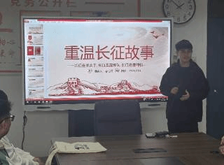 随后,党支部成员轮流上台讲述感人至深的红色革命故事。曹春辉同志带大家重温了长征的艰辛历程,让大家仿佛置身于那段波澜壮阔的历史长河中。蔡佳慧同志生动地讲述了“半条被子”的故事,展现了一名普通共产党员在困境中坚持理想的顽强意志。大家认真聆听,仿佛乘时光机穿越时空,回到了那个革命者们激情澎湃、英勇奋斗的年代,见证了他们的传奇事迹,从而更加深刻地认识到红色革命历史的伟大意义。